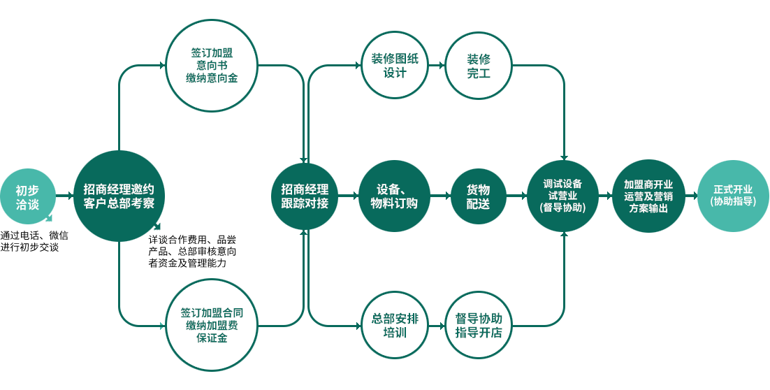 公司總部下設店鋪督導,一年365天,天天巡回在各地代理區域,協助各地投資者進行渠道擴充、店鋪管理,提高經營水平,提升業績